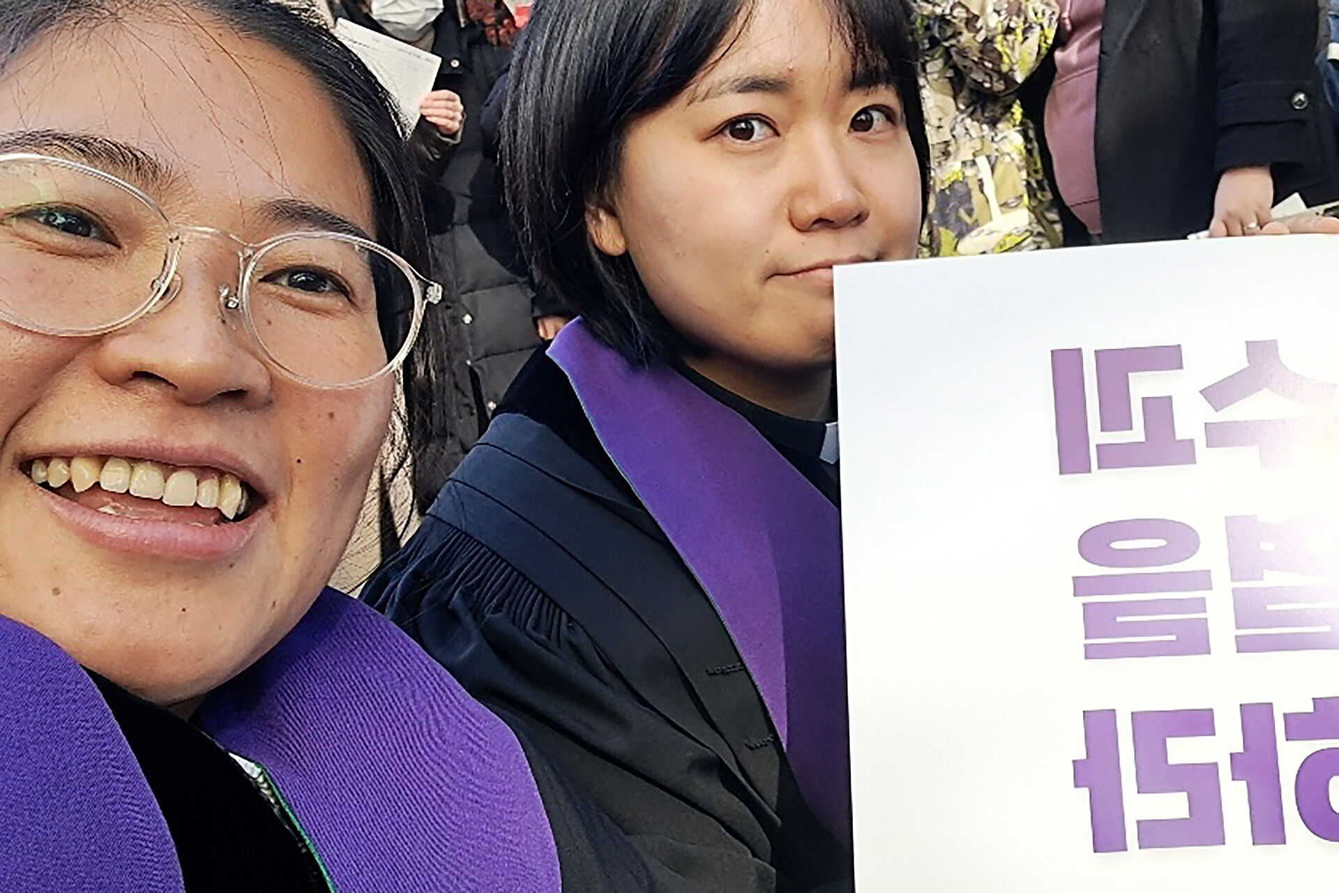 Ich habe in mehrfacher Hinsicht an den Demonstrationen teilgenommen. Zunächst habe ich als Pfarrerin an einem von einer überkonfessionellen Gruppe von Christ*innen organisierten Marsch teilgenommen. Dann habe ich als Bürgerin meine Studierenden zu einer anderen Demonstration vor der Nationalversammlung geführt. Und neulich war ich auch mit anderen Mitgliedern meiner Kirche dort.